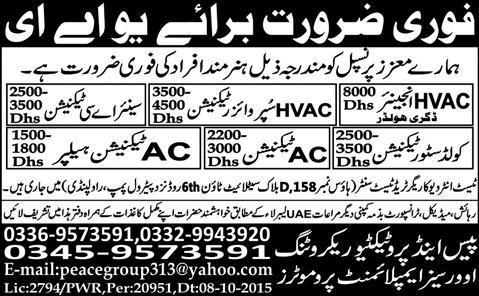 HVAC Engineers, HVAC Supervisor Job Opportunity