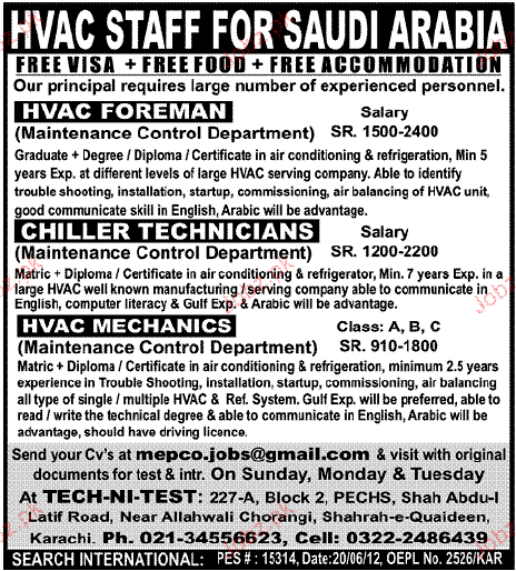 HVAC Foreman, Chiler Technicians Job Opportunity