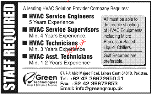 HVAC Service Engineers, HVAC Technicians Job Opportunity