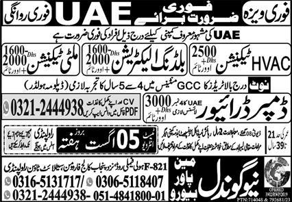 New Gondal Manpower Bureau invites applications for job positions advertised in daily Express dated 3 August 2023 for following vacancies in Abu Dhabi, abu dhabi UAE.