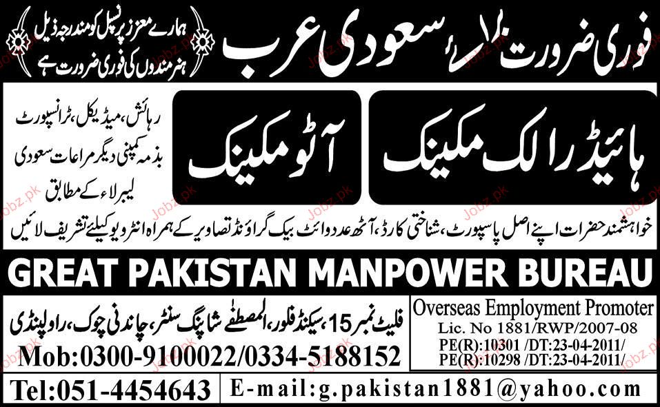 Apply as per details in job advertisement. Login to view further details of how to apply via https://www.jobz.pk online.