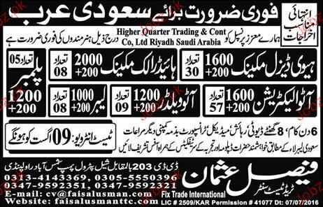 Apply as per details in job advertisement. Login to view further details of how to apply via https://www.jobz.pk online.