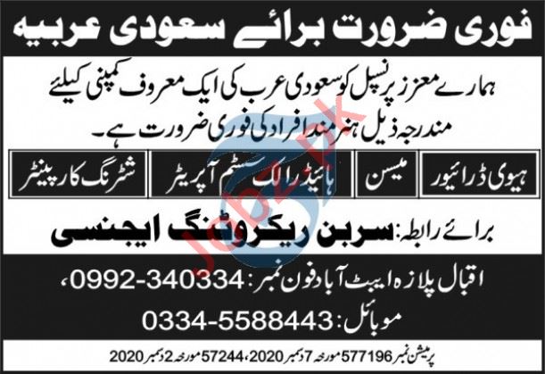 Latest Sarban Recruiting Agency Industrial Posts Saudi Arabia 2025
