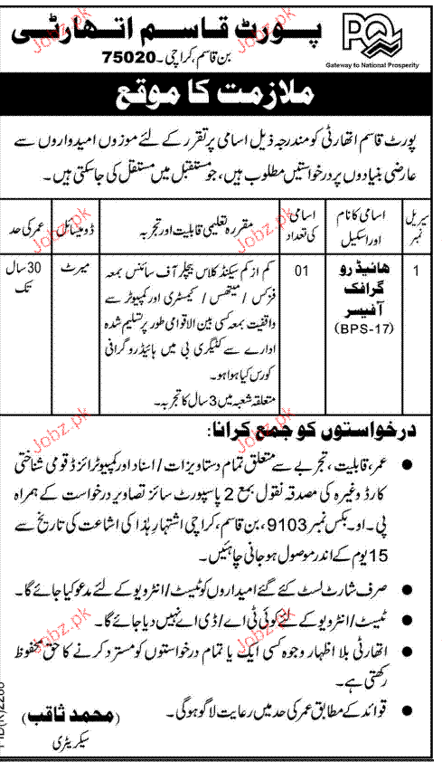 Apply as per details in job advertisement. Login to view further details of how to apply via https://www.jobz.pk online.