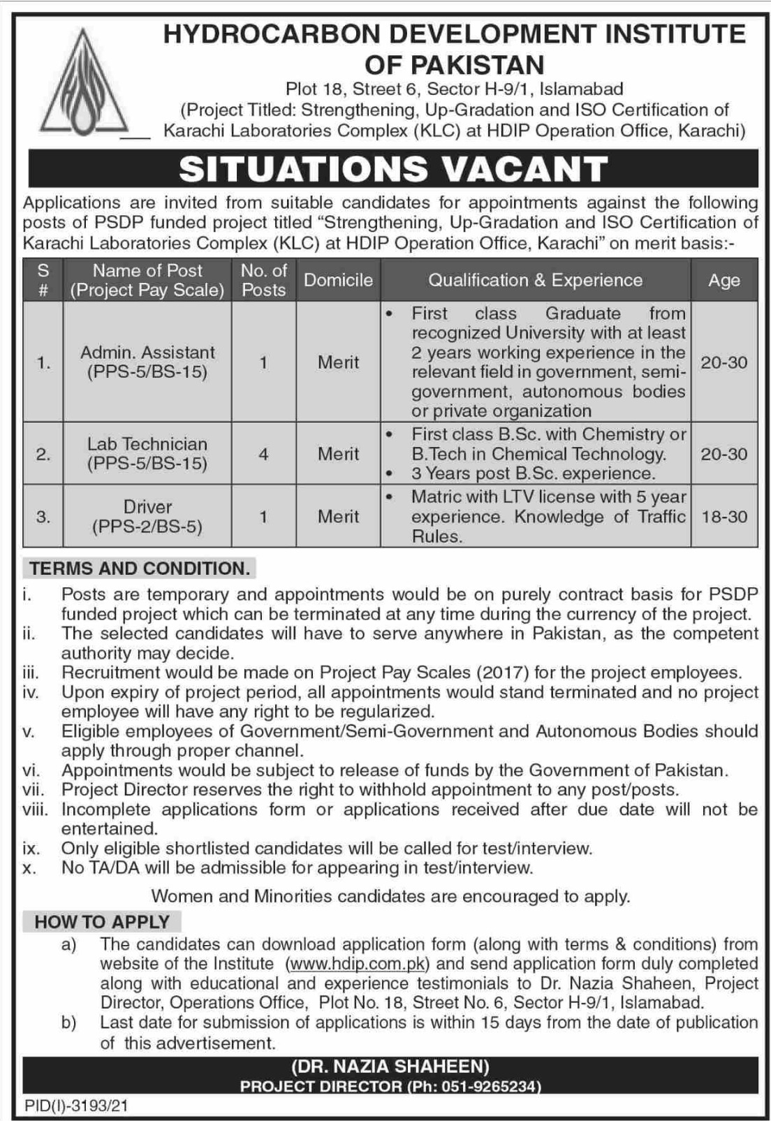 Vacancies in Hydrocarbon Development Institute of Pakistan Advertisement November 2021
