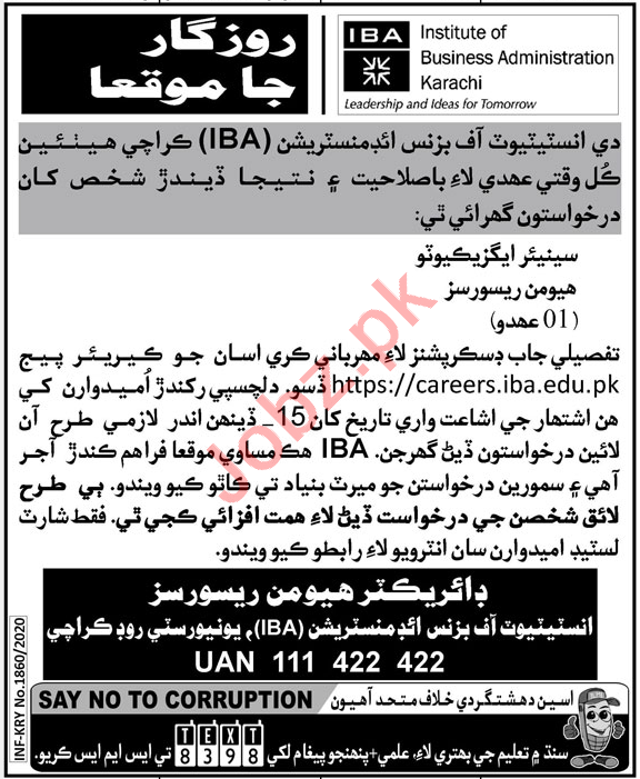IBA Institute Karachi Jobs 2020 For Senior Executive