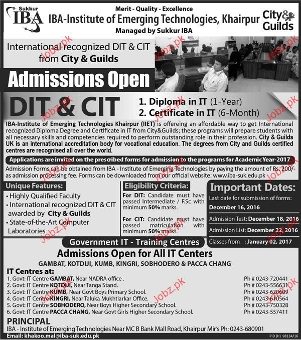 IBA Institute of Emerging Technology Admission in DIT and CIT in Khairpur. Read newspaper ad for exact details.