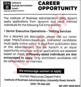 IBA Karachi Jobs 2023 for Executive Operations