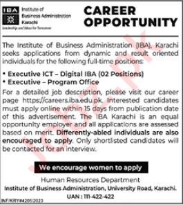 Institute of Business Administration IBA invites applications for job positions advertised in daily Jang dated 15 October 2023 for following vacancies in Karachi, karachi Sindh Pakistan.