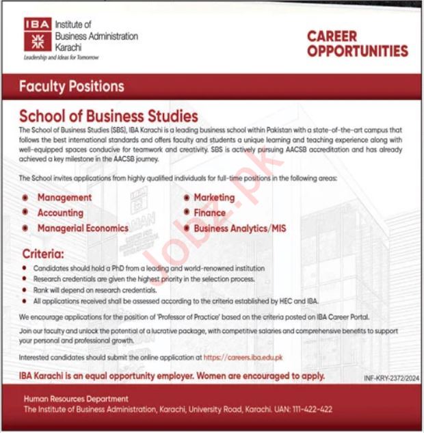 Latest Institute of Business Administration IBA Management Posts Karachi 2025