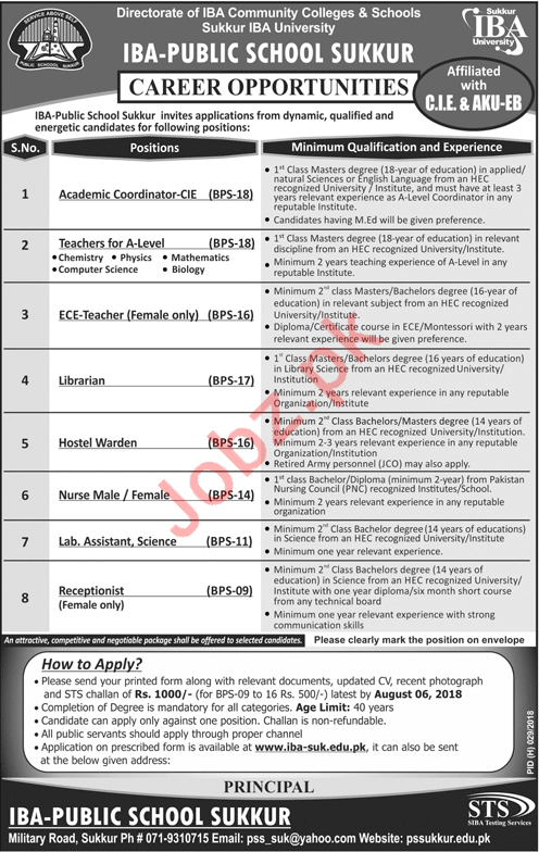 IBA Public School Sukkur Jobs