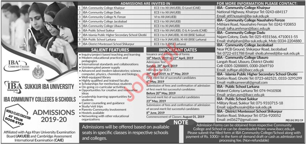IBA Public Schools & Colleges Admissions 2019 PG to Class 10