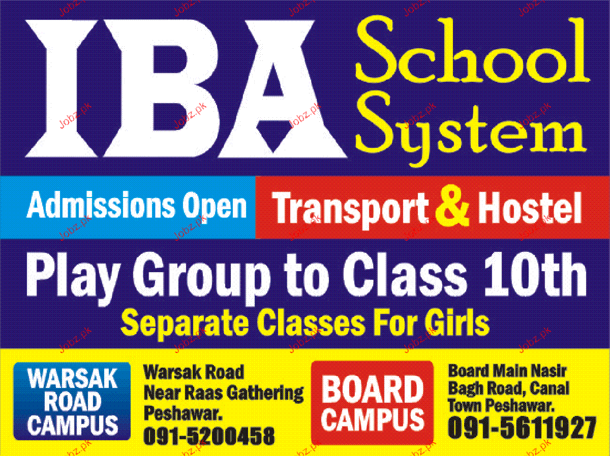 IBA School System Admission in Playgroup to X in Pesharwar. Read newspaper ad for exact details.