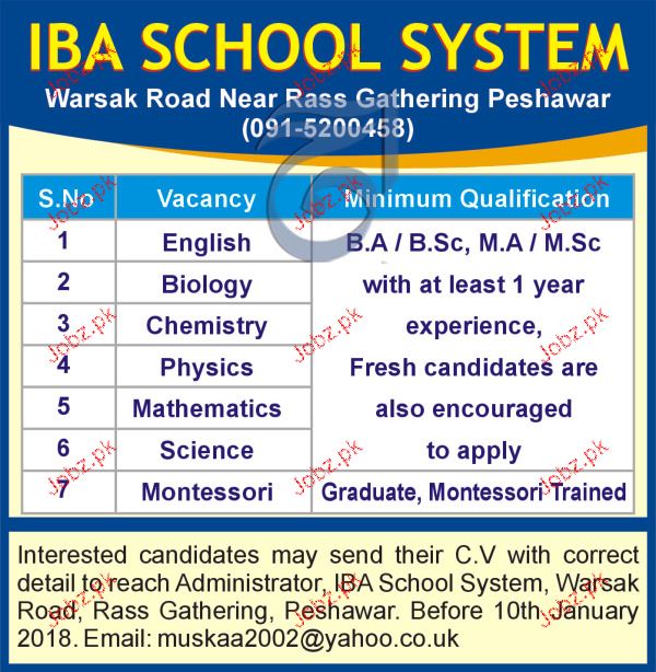 Latest IBA Public School Teaching Posts Peshawar 2025