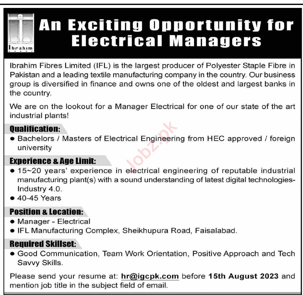 Vacancies in Ibrahim Fibres Limited Advertisement July 2023