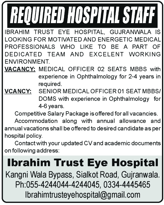 Latest Ibrahim Trust Eye Hospital Medical Posts Gujranwala 2025
