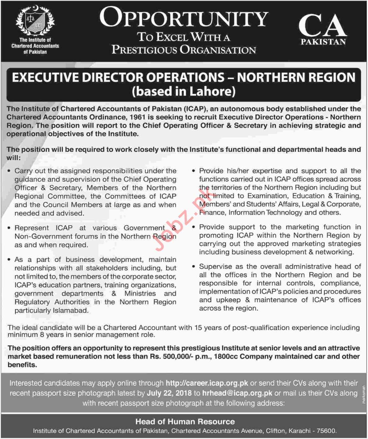 ICAP Lahore Jobs 2018 for Executive Director Operations