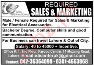 Idea International Company is looking for candidates for following posts as per job advertisement published in daily Jang Newspaper of August 24, 2025 for location Mozang Chungi Lahore, lahore Punjab Pakistan:
