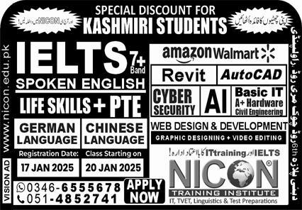NICON Training Institute IELTS admissions 2025 has been announced. NICON Training Institute Rawalpindi Punjab Pakistan welcomes students to apply for admissions in academic year 2025 in Science College. Students who want to enroll for academic session 2025 in qualification and admission criteria for Government institute can apply till last date. Read newspaper ad for exact details.