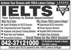 YMCA College has announced admissions 2024 for IELTS Course. Students who want to take admissions in YMCA College Lahore Punjab Pakistan for academic year 2024 to continue education in Management College can apply. Students who want to enroll for academic session 2024 in Course qualification and admission criteria for Private institute can apply till last date 14 February 2024. Read newspaper ad for exact details.