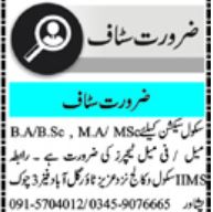 IIMS School & College is looking for candidates for following posts as per job advertisement published in daily Mashriq Newspaper of January 20, 2024 for location Peshawar, peshawar Khyber Pakhtunkhwa KPK Pakistan: