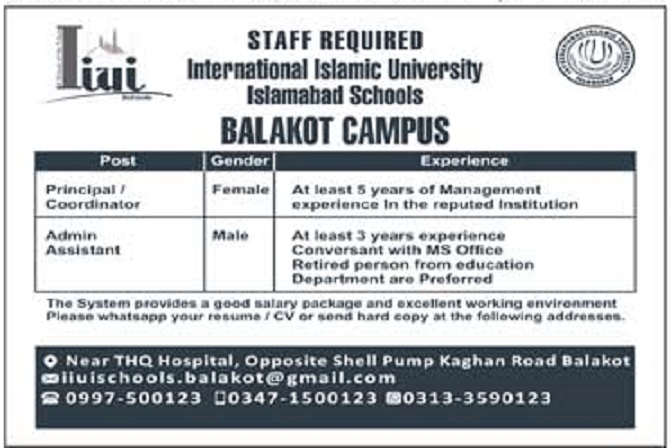 IIUI Schools is looking for candidates for following posts as per job advertisement published in daily Mahasib Newspaper of December 21, 2022 for location Mansehra, mansehra Khyber Pakhtunkhwa KPK Pakistan: