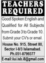 IIUI Schools jobs advertisement dated about 17 August 2025 in daily Jang Newspaper invites application for the vacant post of english teacher in Islamabad, islamabad Islamabad Pakistan. Candidates with MS, Bachelor and Master etc. educational background will be preferred.