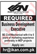 IKAN Engineering Services Pvt Limited is looking for candidates for following posts as per job advertisement published in daily Jang Newspaper of August 28, 2022 for location Lahore, lahore Punjab Pakistan: