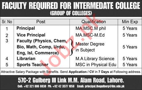 A well known and leading ILM Group of Colleges is hiring experienced and well qualified candidates against the posts of Principal, Vice Principal. Physics Teacher, Chemistry Teacher, Bio Teacher, Maths Teacher, Computer Teacher, Urdu Teacher, English Teacher, Islamiyat Teacher, Commerce Teacher, Librarian, Sports Teacher in Lahore.