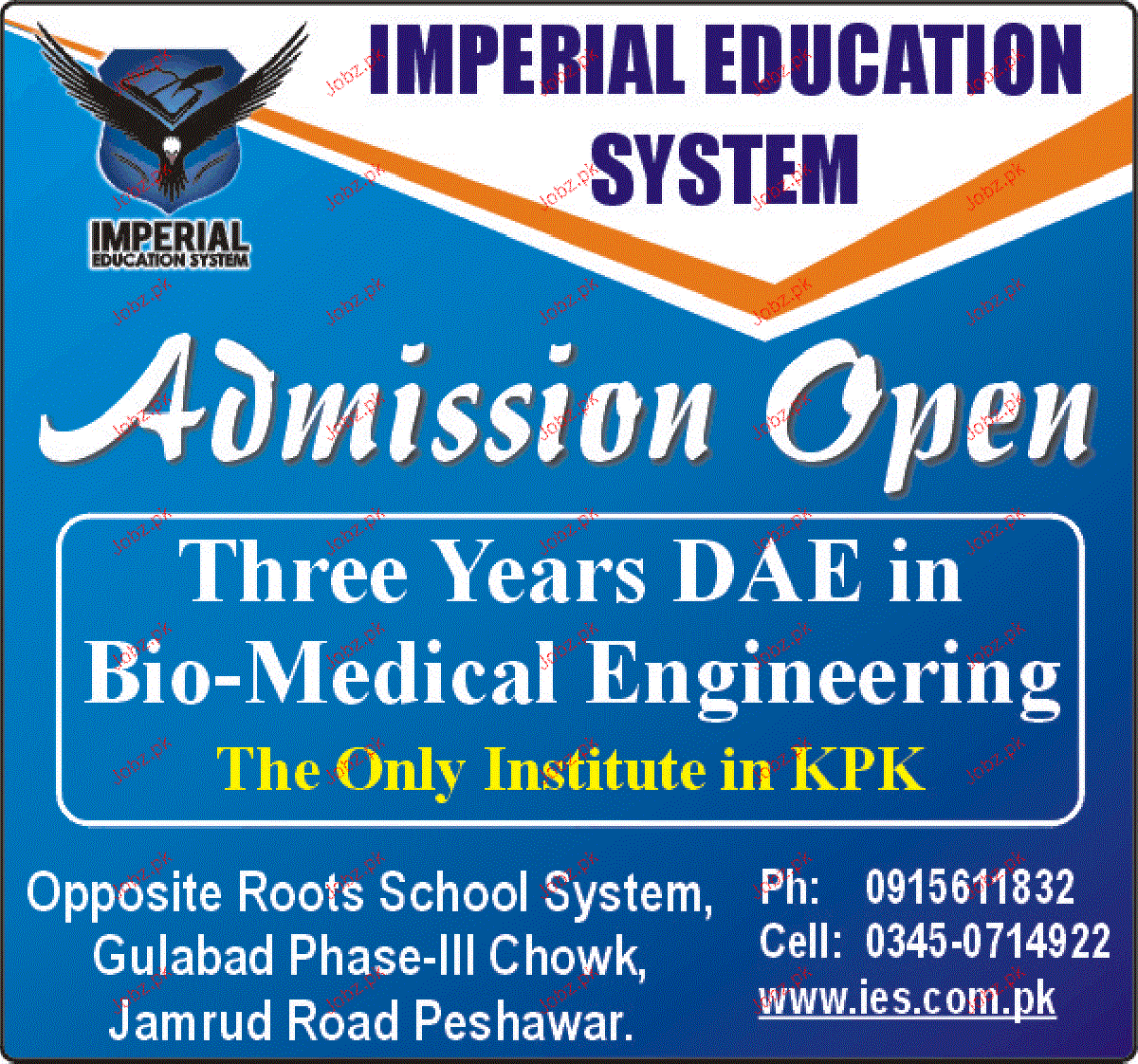 Imperial Education System Admission in DAE in Peshawar. Read newspaper ad for exact details.
