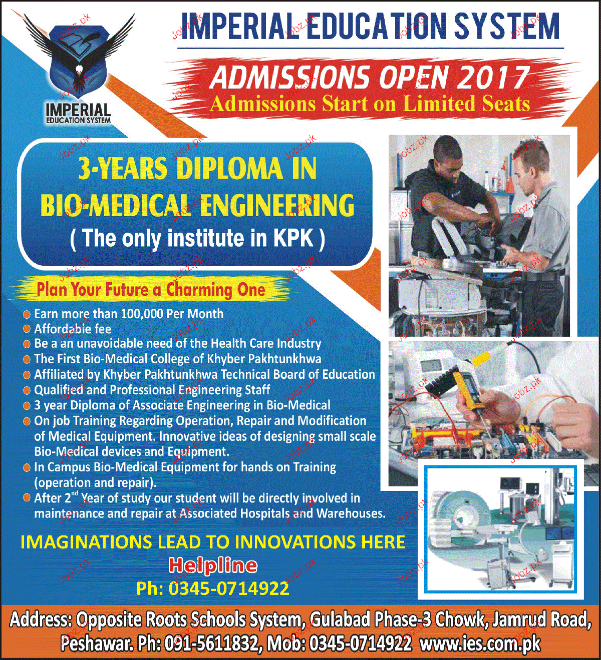 Imperial Education System Admission in DAE in Peshawar. Read newspaper ad for exact details.