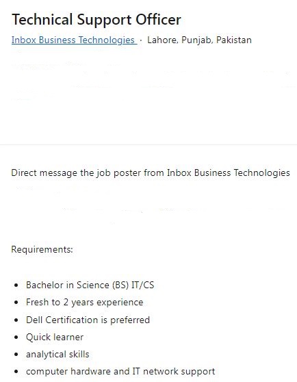 Inbox Business Technologies invites applications for job positions advertised in daily Other dated 29 December 2022 for following vacancies in Lahore, lahore Punjab Pakistan.