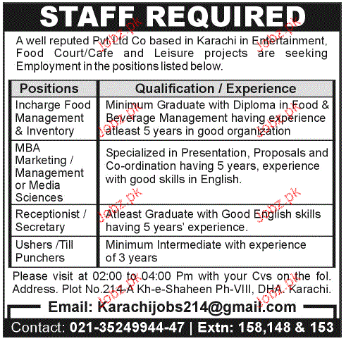 Apply as per details in job advertisement. Login to view further details of how to apply via https://www.jobz.pk online.