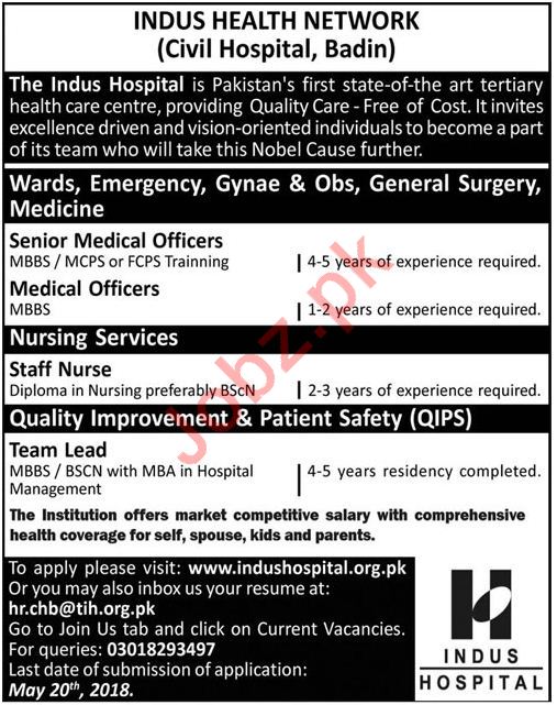 Indus Health Network IHN Civil Hospital Badin Jobs 2018