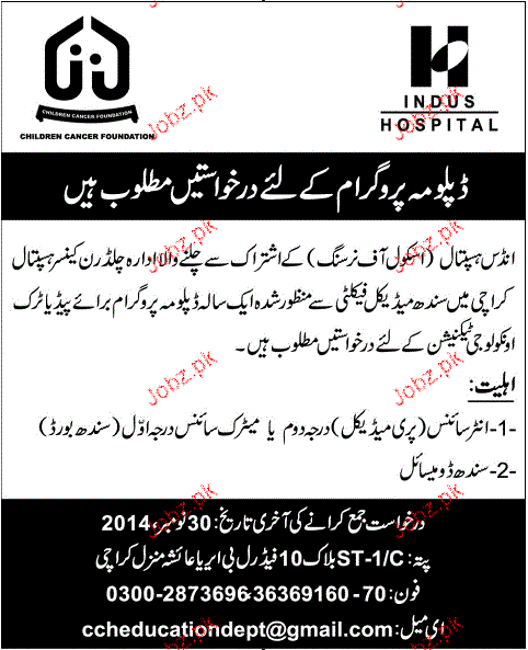 Indus Hospital Admission in One Year Diploma Program in karachi. Read newspaper ad for exact details.