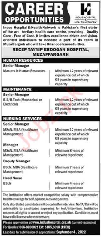 Recep Tayyip Erdogan Hospital jobs advertisement dated about 21 August 2022 in daily The News Newspaper invites application for the vacant post of manager hr, manager, deputy manager, manager nursing services, manager maintenance and head nurse in Muzaffargarh, muzaffargarh Punjab Pakistan. Bachelor, B.E and MBA etc. educational qualification will be preferred.