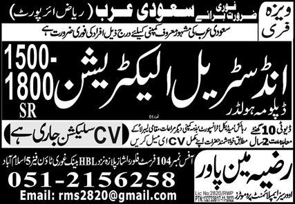 Razia Manpower Services invites applications for job positions advertised in daily Express dated 19 November 2022 for following vacancies in Riyadh, dammam Saudi Arabia.
