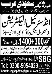 SBG Recruiting Services Dammam, jeddah Saudi Arabia invites applications from eligible candidates for the post of industrial electrician as per advertisement of May 1, 2024 published in daily Express Newspaper. Persons with DAE, Intermediate and Matric etc. education can apply.