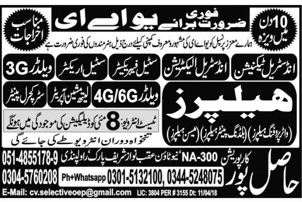 Latest Hasilpur Corporation Industrial Posts UAE 2025