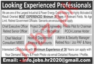 A largest Industrial & Power Energy Group is looking for highly motivated, medical, health, mbbs, doctors and result oriented ex-servicemen for the positions of Chief Executive Officer, Project Director Engineering, Pilot, Chief Medical Consultant, Finance Head, Accounts Head, Admin Manager and Security Manager in Islamabad.