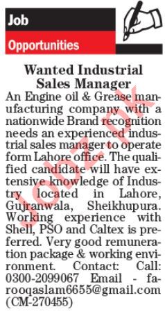 Latest Manufacturing Company Sales Posts Lahore 2025