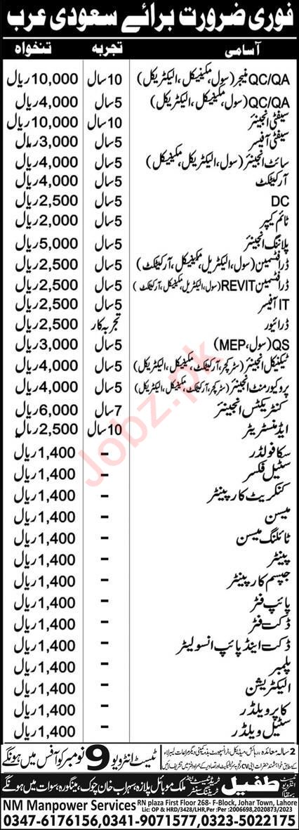 Tufail International Overseas Employment Promoters Makkah, makkah Saudi Arabia invites applications from eligible candidates for the post of painter, planning engineer, pipe fitter, mason, contracts engineer, safety officer, steel fixer, steel welder, plumber, safety engineer, qc manager, it officer, dc, ducket fitter, administrator, qa manager, draftsman, skif folder, electrician and concrete carpenter as per advertisement of October 29, 2023 published in daily Express Newspaper. DAE, Middle, Primary, Bachelor, Matric, B.E and Intermediate etc. educational qualification will be preferred.
