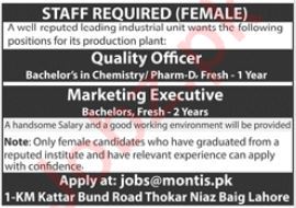 Industrial Unit jobs advertisement dated about 7 January 2024 in daily Jang Newspaper invites application for the vacant post of marketing executive and quality officer in Lahore, lahore Punjab Pakistan. Educational qualifications required Pharma D and Bachelor etc.