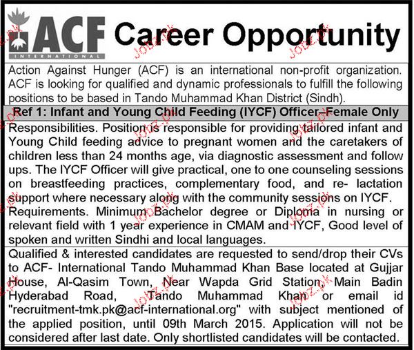 Infant and Young child Feeding Officers Job Opportunity