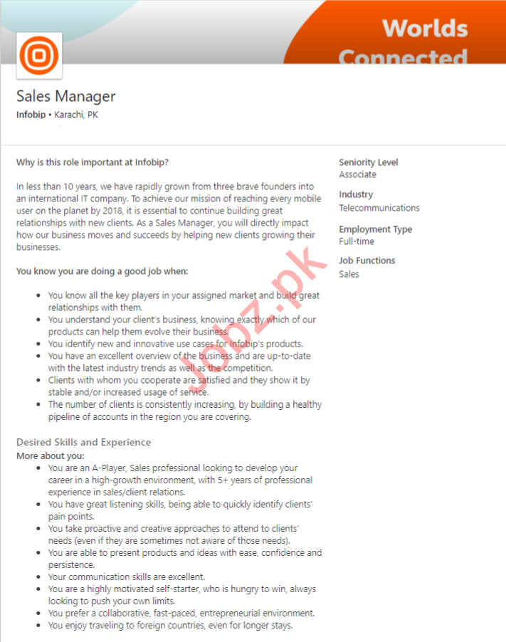 Infobip Karachi Jobs 2020 For Sales Manager