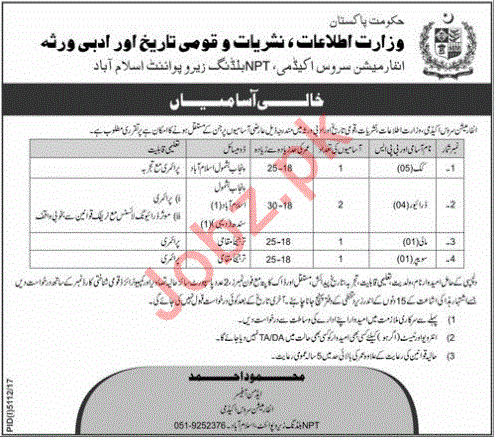 Latest Ministry of Information Broadcasting and National Heritage Labor Posts Islamabad 2025
