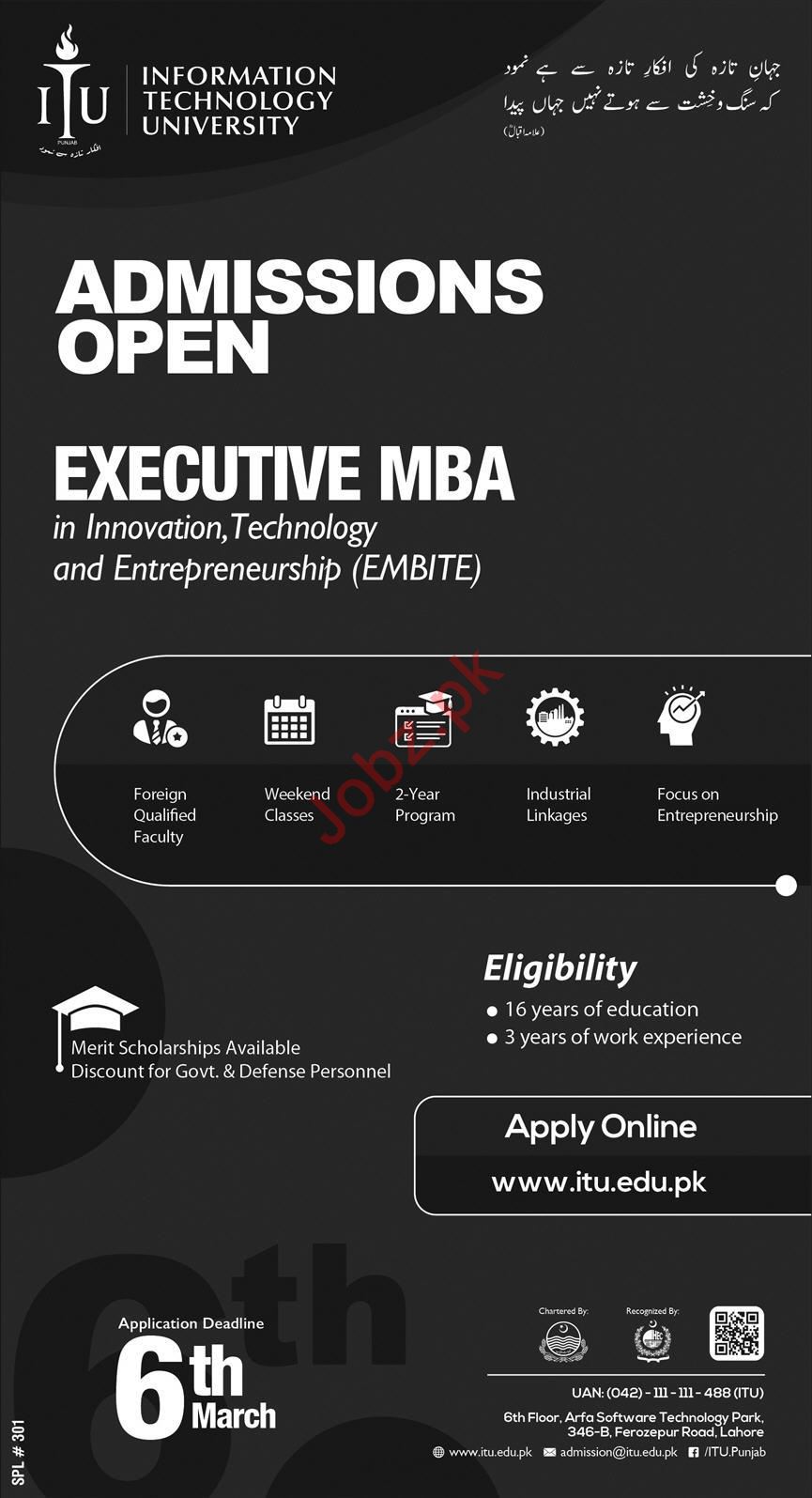 Information Technology University ITU Admissions 2020