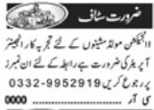 Factory is looking for candidates for following posts as per job advertisement published in daily Khabrain Newspaper of August 12, 2023 for location Lahore, lahore Punjab Pakistan: