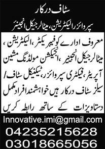 Innovative Medicien Initiative IMI Lahore, lahore Punjab Pakistan invites applications from eligible candidates for the post of engineer, fabricator, technical staff, sales person, electrician, supervisor and machine operator as per advertisement of March 27, 2022 published in daily Express Newspaper. Candidates with Intermediate, Matric, Middle and DAE etc. educational background will be preferred.