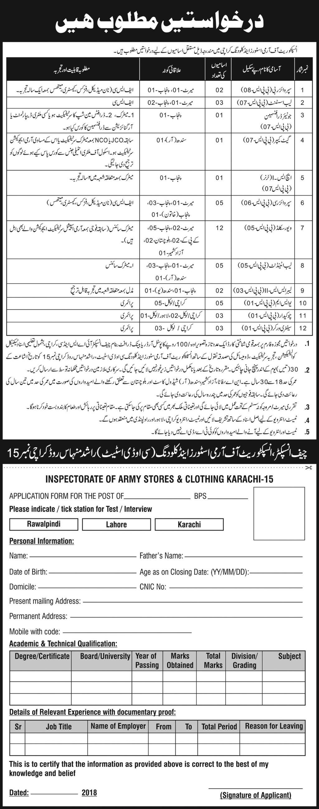 Latest Inspectorate of Army Stores & Clothing IAS&C Management Posts Karachi 2025
